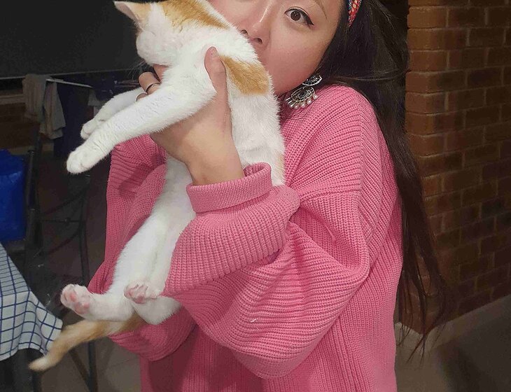 I also grew up around big Labradors in Korea, and later cared for a kitten while living in Australia.