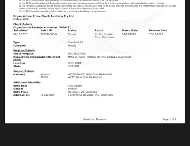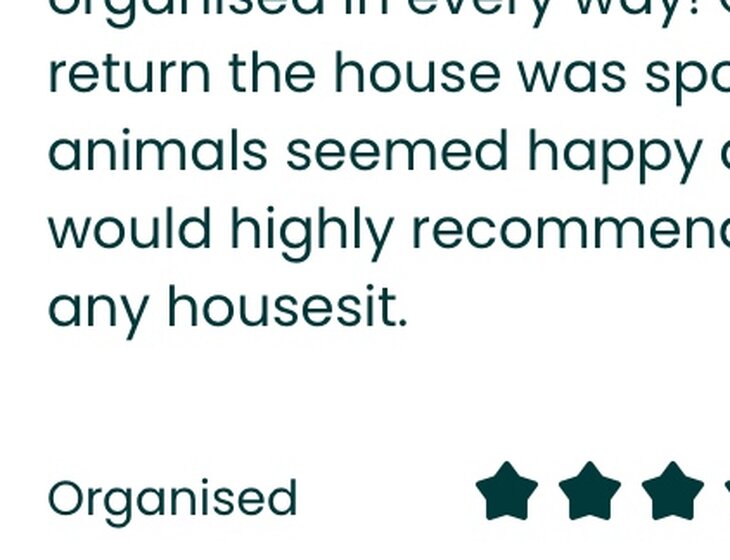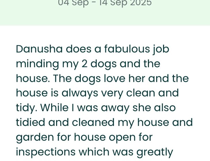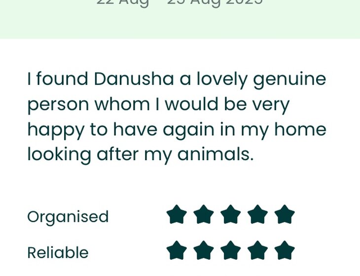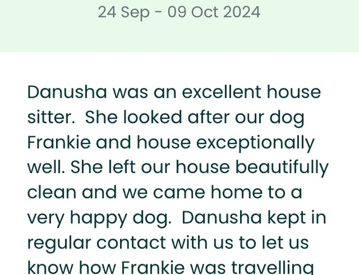I have provided Reviews.from trusted house sitters .I had to crop to reduce jpeg size. Warm regards Danusha.