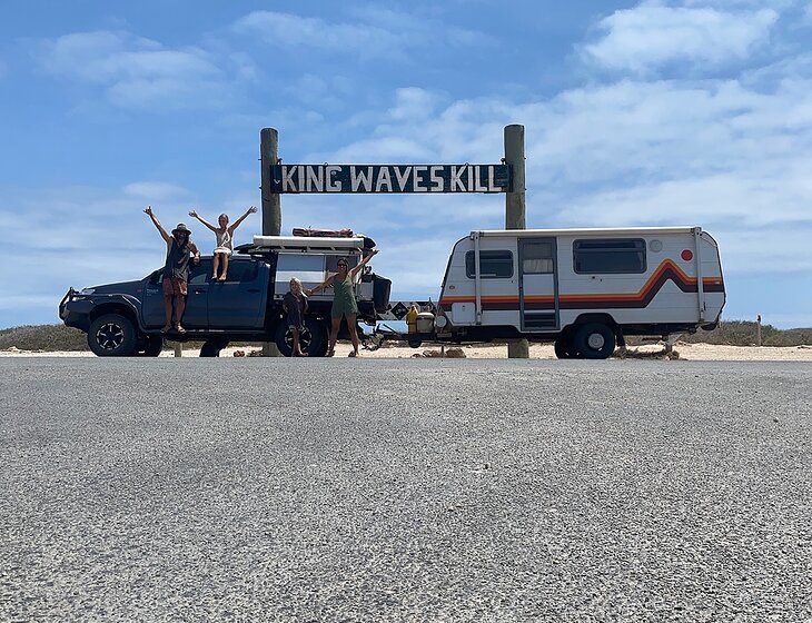Hello we are Beth and Juzzy! We are travelling Australia full time in our tiny 16ft caravan, with our daughter Cedar (10) and our son Ochre (8) and our beloved Border Collie X Coolie Gypsy (11).