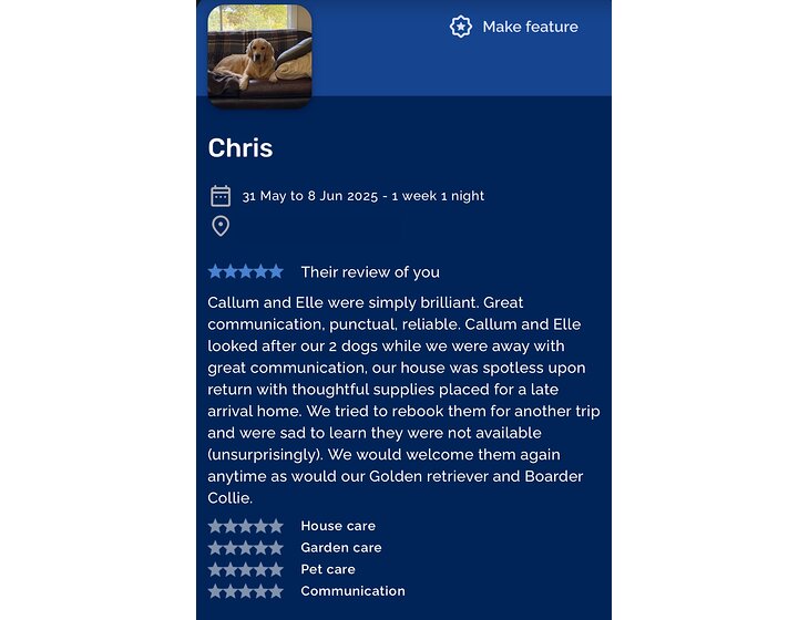 More information about this house sitter