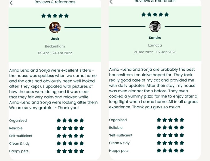 (You may only be able to access the Link if you have a (free) account on the troustedhousesitters website, if it doesn´t work you can also see screenshots of the reviews in the photo section of our profile. )
