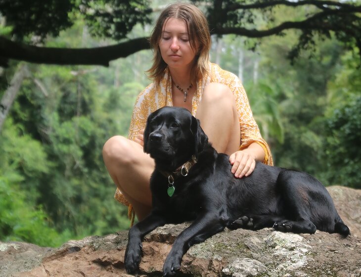 I have a 3 year old labrador who will be me. Shes very friendly and loves other dogs and cats. She doesnt chase wildlife.