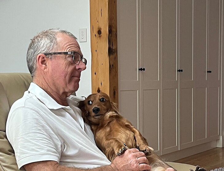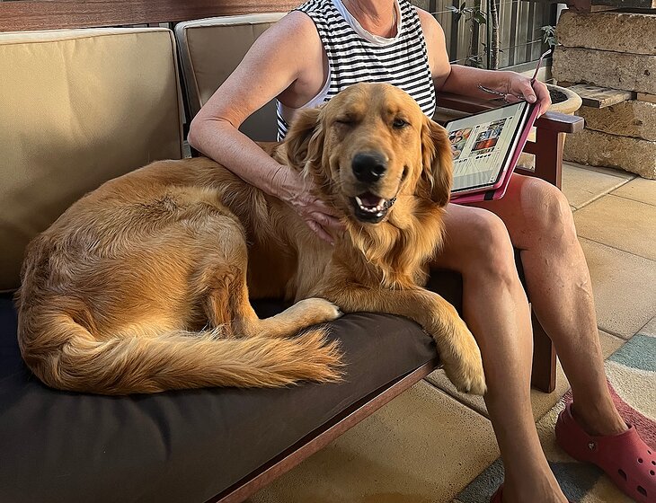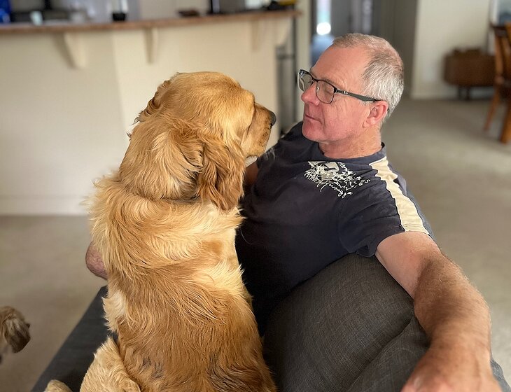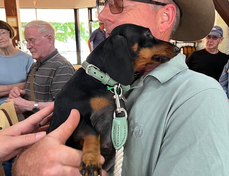 Over the years we’ve had quite a few dogs. Now we travel more and are volunteer National Parks camp ground hosts here in SA we don’t own a dog. We have all the relevant clearances. We both love meeting new people and enjoy camp ground hosting. This pic is of us with a big group in Port Lincoln National Park in the April school holidays. I organised a Dawn Service on the cliff top with the sun rising for the camp ground and offered breakfast. It was a huge success.