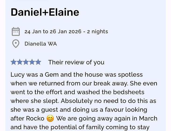 Professional Housesitter and FIFO partner who will join me for sits on occasion. Caring considerate couple who will look after your fur families and home like our own. Active couple who both enjoy bushwalking and gardening and are also very houseproud so your home will also be well cared for.