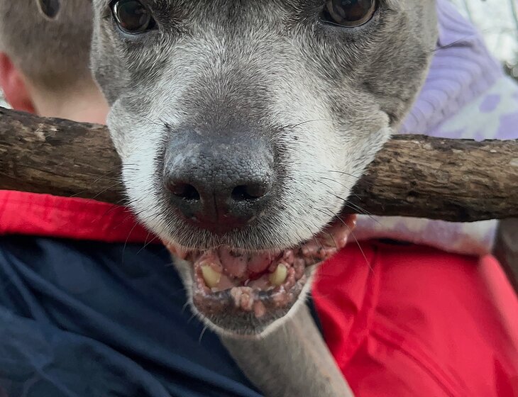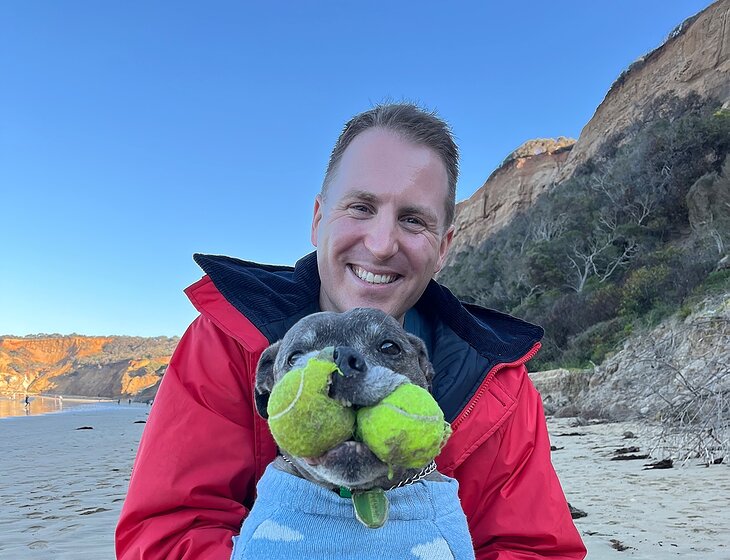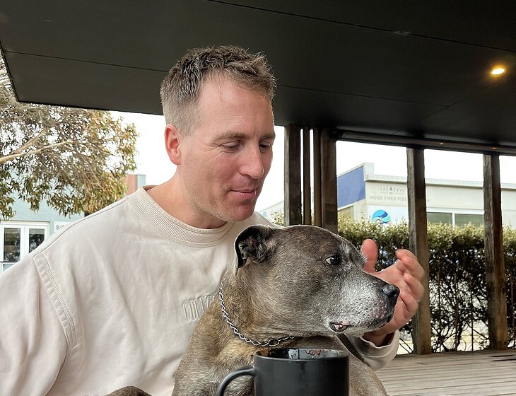 We have an elderly 14 year old blue staffy called Belly. She is our everything and we now do all of our house sits with her. She has a gentle temperament and loves to spend most of her day sleeping, with little breaks for tennis ball games in between.