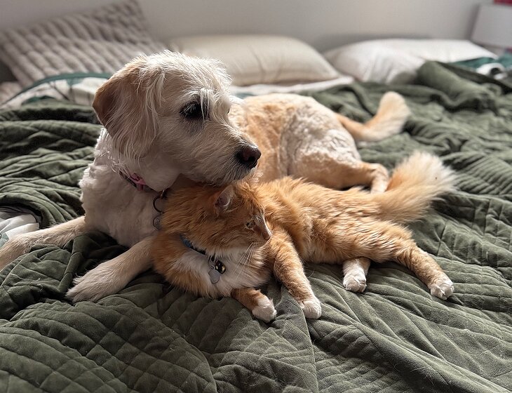 We no longer have pets of our own but still babysit our son’s labradoodle and ginger cat.