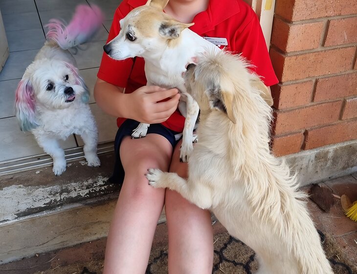 Home for us is Alice Springs. We have 4 fur babies who live with us, all rescues from our local pound. Goldie (labrador) and Poppy (terrier x) are besties and both over 10yrs old. Our moggie sister cats are Starlight and Silky, both 5yrs old.