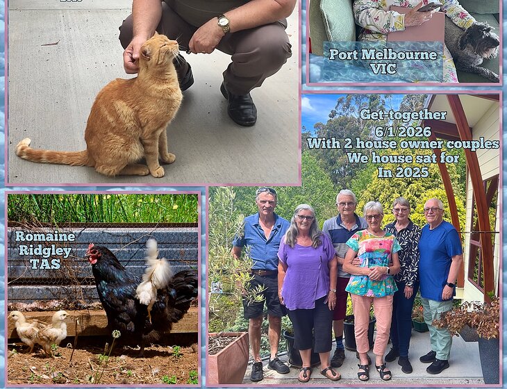Since arriving in Tasmania at the end of 2024, we have been house-sitting in the Stowport & Ridgley Areas (as well as in Melbourne). We are currently looking after a 5 acre property in the Ridgley area caring for gardens of flowers, plants, fruit & vegetables, several chooks, 7 newly hatched chickens, 2 ducks and 2 donkeys etc., and we are now looking forward to creating more memories as we help others to make theirs.