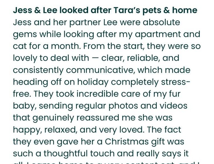 Weve travelled all the way from the U.K and have been in Australia since start of December 2025 on 12 month working visa . We've house sitted twice , four weeks in coogee for the founder of coogee run club with lovley cat and 10 days in Orange for a lovely family with two dogs. We can provide reviews and ref if needed.