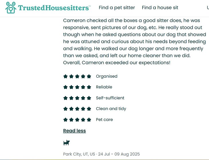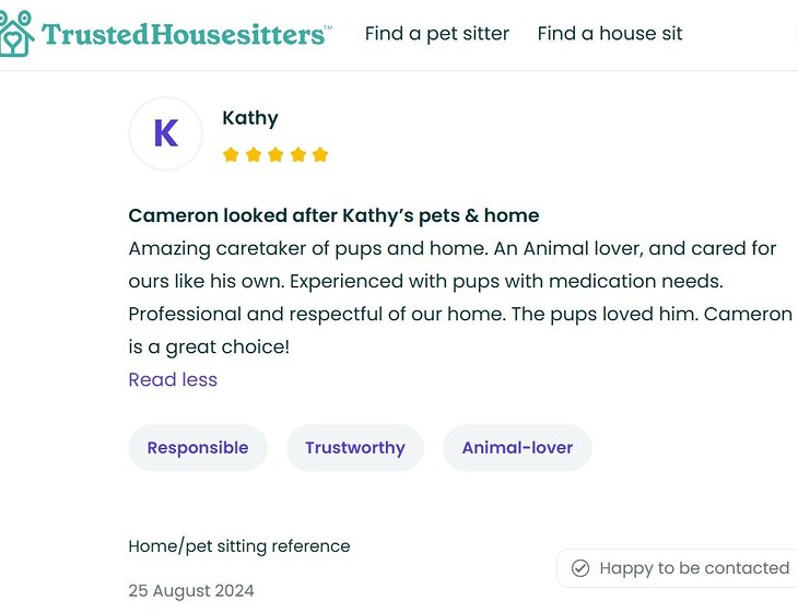 Experienced sitter globally on Trusted House Sitters (reference and review in images). Now in Sydney and looking to do the same with this new profile.