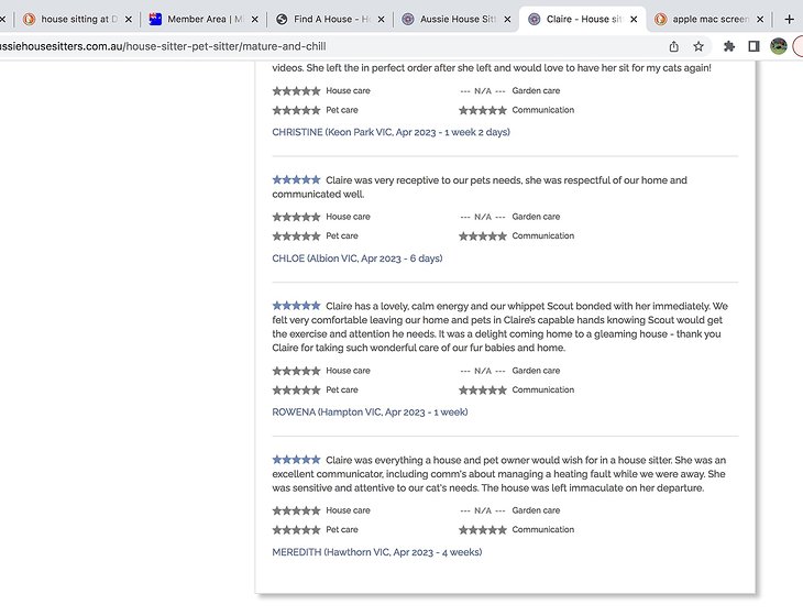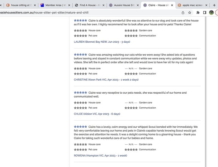 Hello, my apologies, but I am not currently active on this site. I have extensive house-sitting experience. I am considering retiring due to a change in circumstances which effects my interest in house sitting.