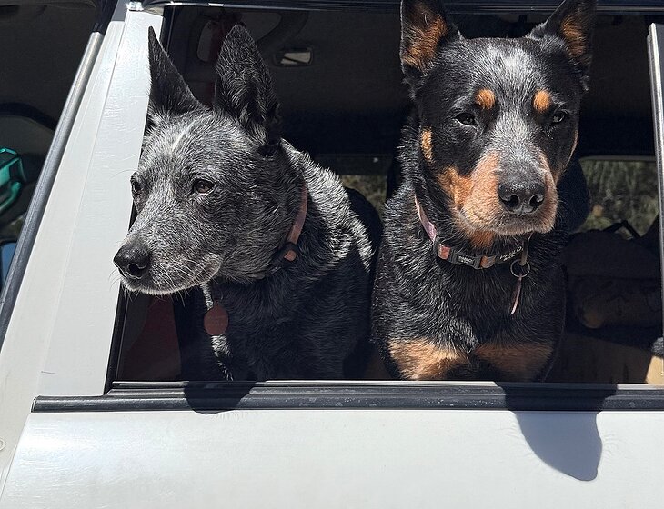 Our dogs are cattle dogs (not the working kind). Zara is 12 and quite slow now. Loves a morning walk with Penny 6 but then enjoys to sleep majority of the day. Both are very well trained and great with other dogs.