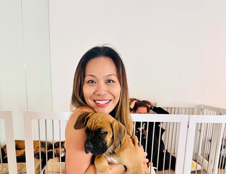 My name is Thea. I am a yoga and puppy yoga teacher/front of house usher/television commercial talent and a tour guide for the Australian Open. I also do volunteer work for Vinnie's and Etsara. I am a dog person, i love musical productions where my partner works. His company, Disney, sends us from one state to another to bring musical productions there for several months.