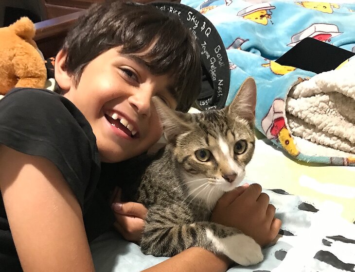 His name is Klaeson. A kind and gentle, quiet and happy lil man ๐จโ๐ Klaeson is good at knowing when animals need some love, a play a sleep or simply just want to be left alone .๐๐บ๐ป๐ธ