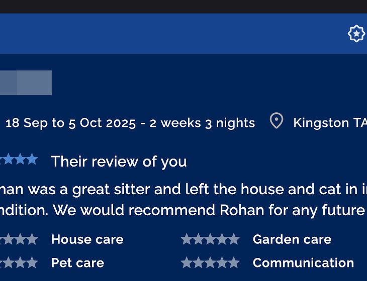 I have worked for myself for over 20 years, running a small software business online. I work from home and can therefore provide more constant companionship for your fur friends, and greater security for your property.