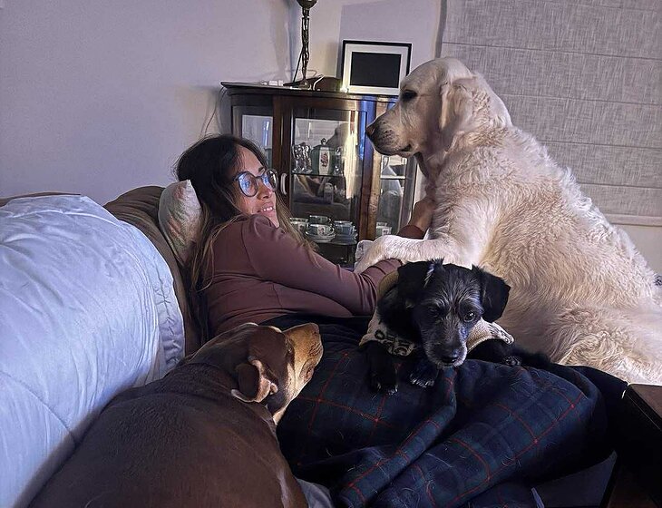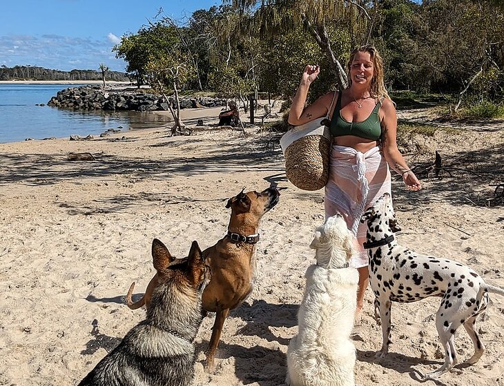 Cassie is joined by Sage, her calm and incredibly sweet 5-year-old Golden Retriever. Sage is deeply socialised and has lived alongside dogs, cats, chickens, cows, birds, and horses. She never chases or overwhelms them, she gently matches the energy of others and brings a quiet, grounded presence to any space. She’s used to a relaxed work-from-home rhythm, with two to three beach walks or outings per day, and spends most of her time snoozing peacefully nearby and your pets likely will too.