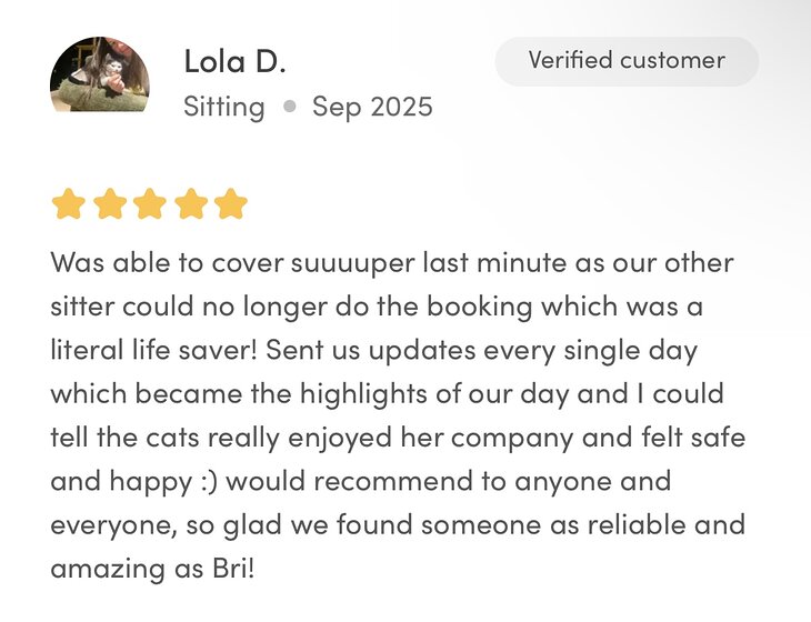 My name is Bri and I am a pet/home sitter ? ? ?