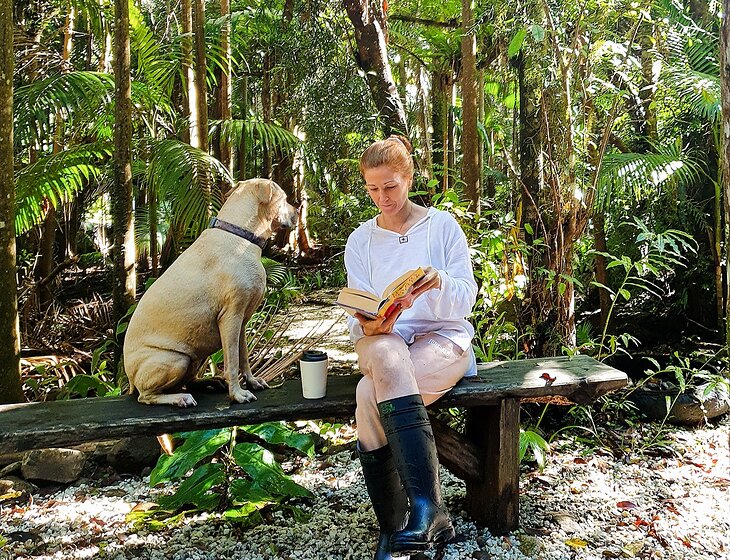 • 20 acres Myocum – Fragile and incontinent senior dog → back to swimming and smiling