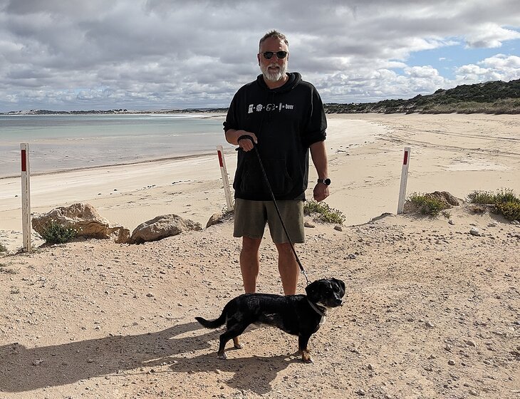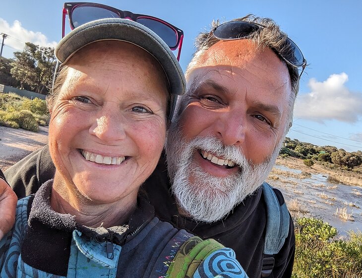 Hello! We are a married couple, both 51, doing the big lap of Oz, with our little dog Charlie.