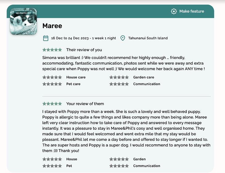 *Housesitting is no news to me - in the gallery you’ll see that I had some reviews from when I exploring New Zealand a couple years ago (I used kiwihousesitters website that time). I have minimal but good enough garden skills (and I don’t mind getting my hands dirty), worked in multiple places as a cleaning personell (and I do genuinely enjoy cleaning with a good podcast/audiobook on), am very good pet petter (according to all pets I petted).