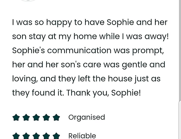 I’m happy to send through our reviews from trusted house sitters upon request.