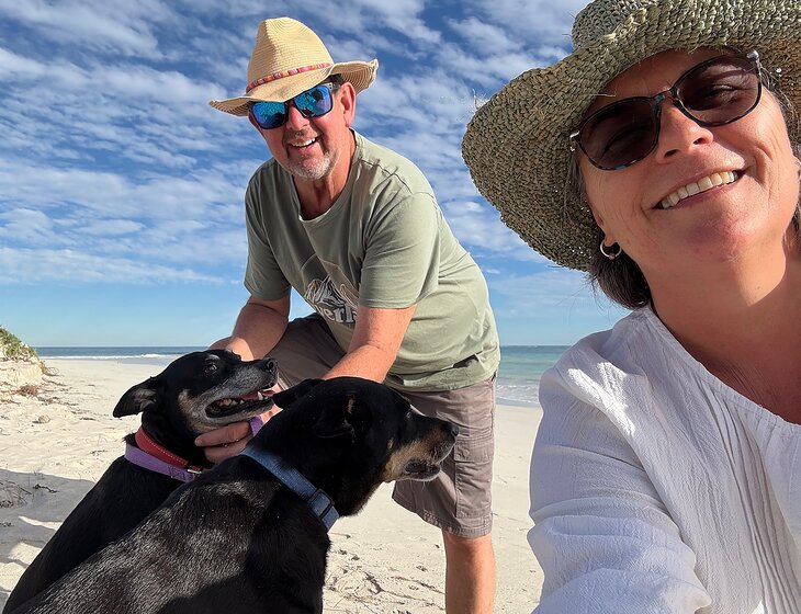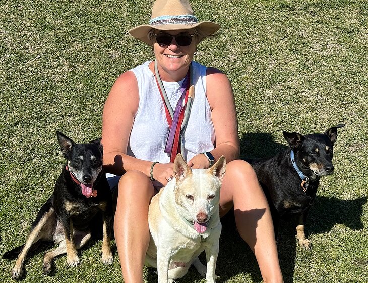 Hi, we’re Susie (55) and Garth (59). We’re lifelong animal lovers and proud parents to two gentle kelpie crosses, Harvey (11) and Dizzy (10). They’re friendly, social, and love meeting new furry friends - as long as there’s a comfy spot to nap afterwards!