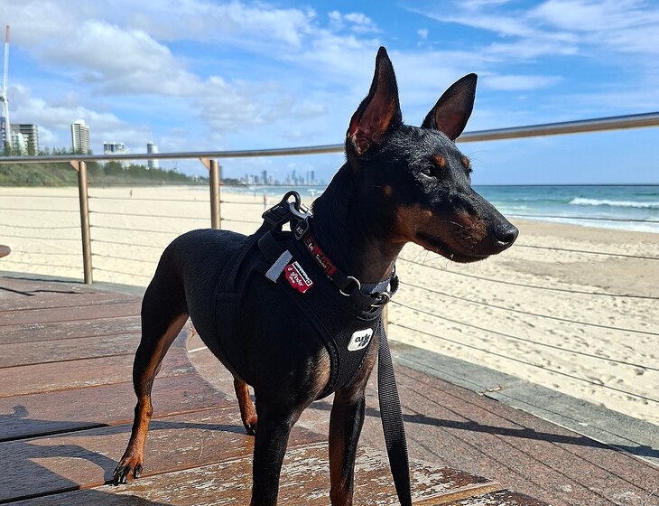 I travel with my one-year-old English Toy Terrier, Chief. He is desexed, fully vaccinated, house-trained and very well socialised. He loves other dogs, animals and people, and is accustomed to staying in different homes. I only apply for sits where an additional small dog is welcomed and I’m careful with introductions and routines to ensure all pets are comfortable.