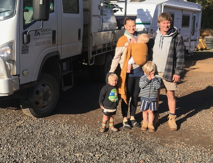 We are a Young Family traveling around Australia, Both my partner and I are in our 30s and we are traveling with our 4yo, 2yo 9mnth old and our old boy Jet Dog.