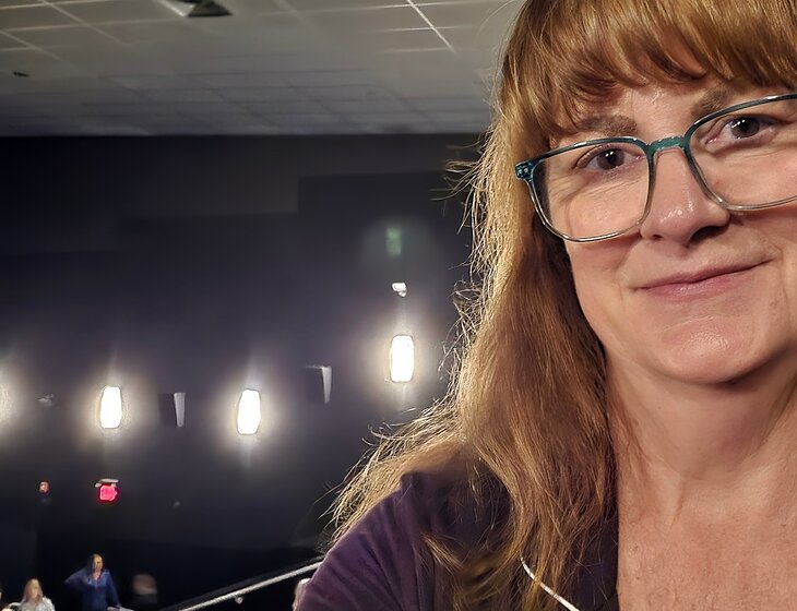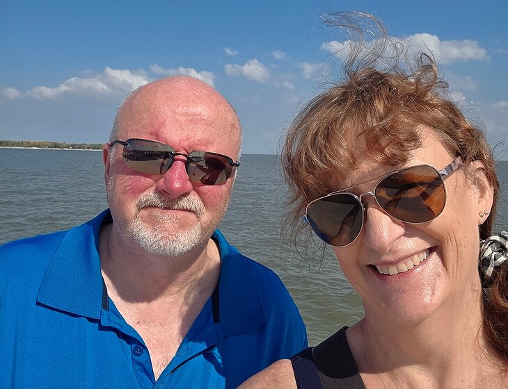 1st photo is of a selfie at an ice hockey game. we had very high seats. the second is of my husband and I on a road trip to Manitoba this year and the 3rd is of our beautiful boy Lynx.