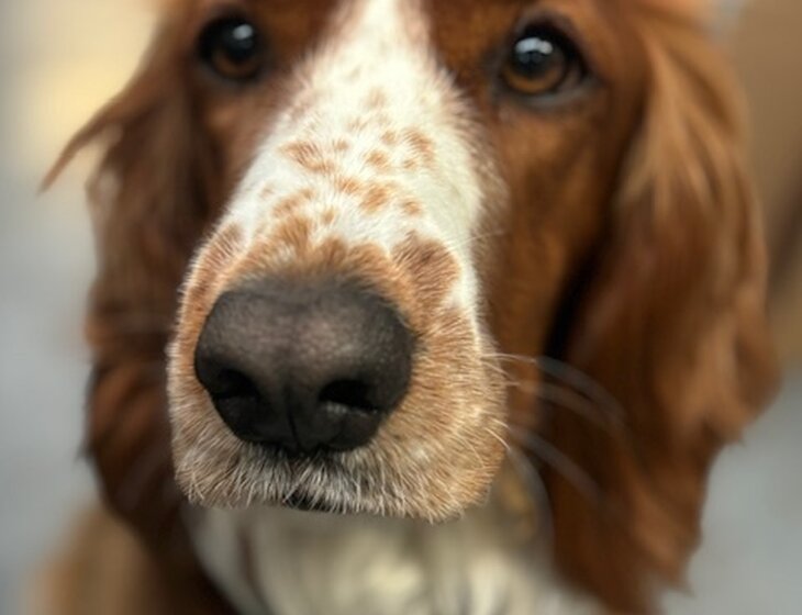 Iris, our dog is a Welsh Springer Spaniel, a big cuddler and loves nothing more than being part of the family and going on walks to the local parks... she does love a ball throw as well.