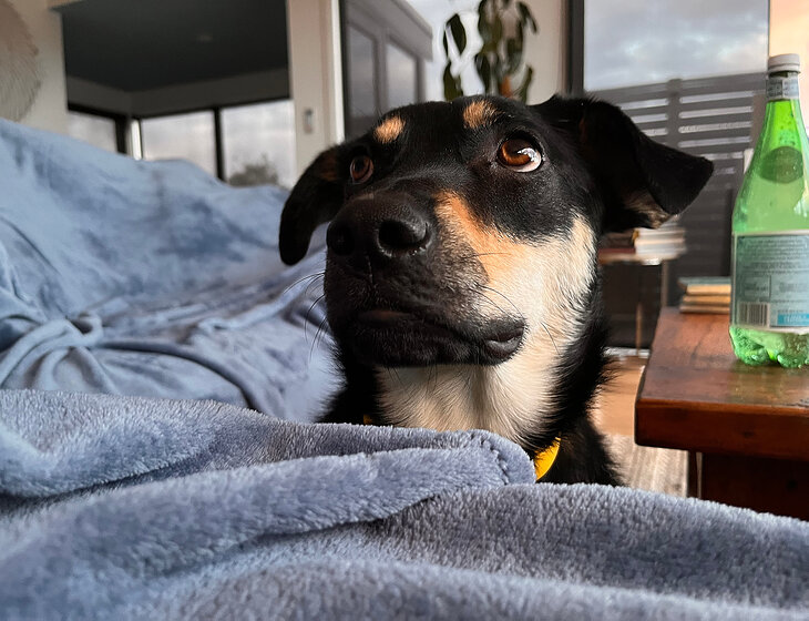 He is a Kelpie mix, with some Staffy and a dash of German Shepherd. He weighs around 20kg, is about knee height, and while he’s a gentle soul, he comes with a very convincing German Shepherd bark. It’s impressive rather than frequent, but confidence with a dog who can sound bigger than he is will be important.