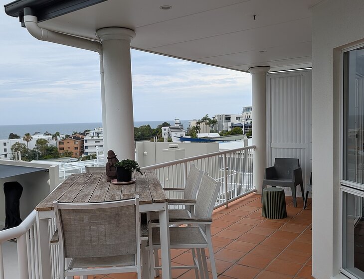 - A three bedroom, 2 bathroom, 1 carpark apartment in a complex of 11. Panoramic 180 degree views of the Alexandra Headland and beach facing north towards Maroochydore and beyond (all the way up to Noosa). Ideally we'd like our bedroom/ensuite to not be used during your stay but this is not a deal breaker. The bedroom/bathroom in the photo's is the primary accommodation and the 3rd bedroom is set up as an office which your welcome to use.