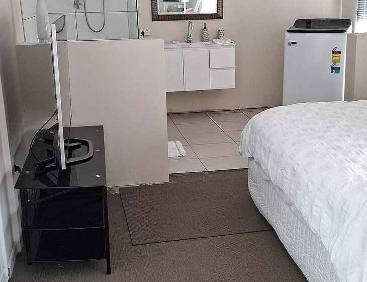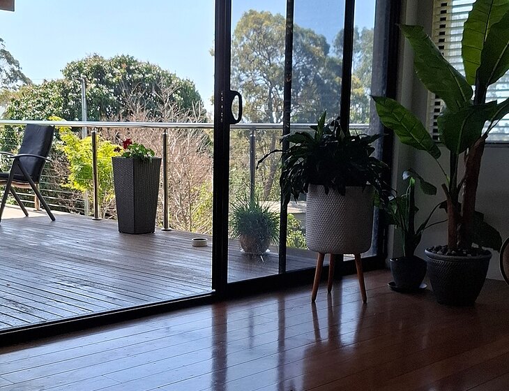 2 level home, 3 bedrooms, 3 bathrooms, 2 kitchens, 2 living areas, top and bottom deck. Our house is in a quiet street. Plenty of birdlife and if you're lucky you'll spot a kangaroo from our deck. It's a lovely view from the top deck looking over the many large trees in the street.