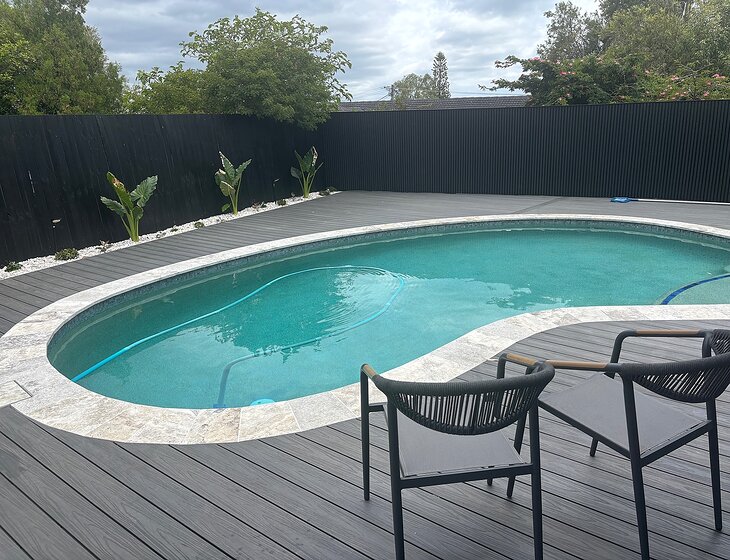 We have a pool and barbecue in our outdoor space for you to enjoy. A comfy couch in a comfortable home with Aircon.