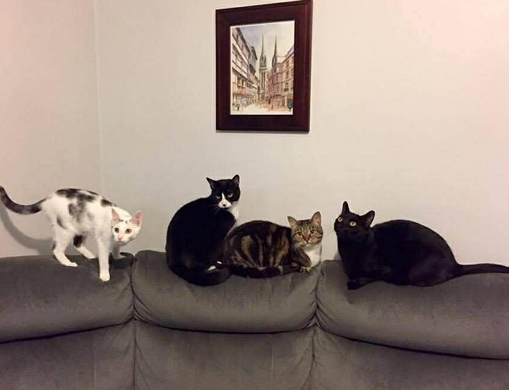 We have 1 dog and 4 cats.
