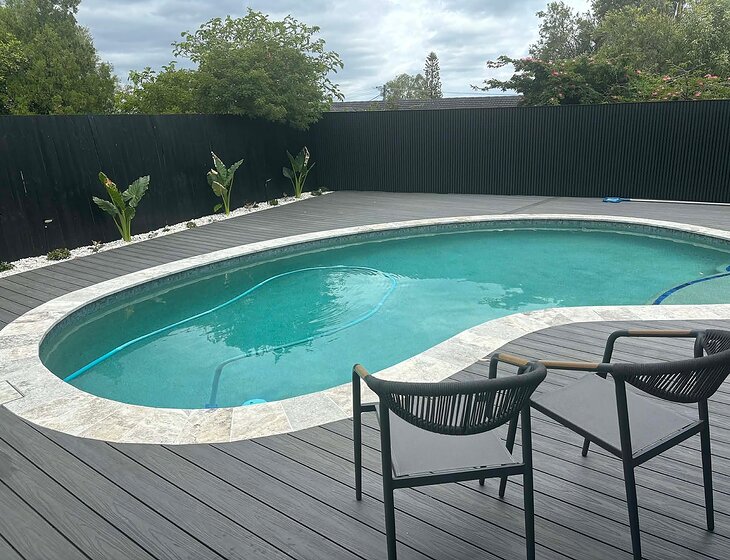 We have a pool and barbecue in our outdoor space for you to enjoy. A comfy couch in a comfortable home with Aircon.