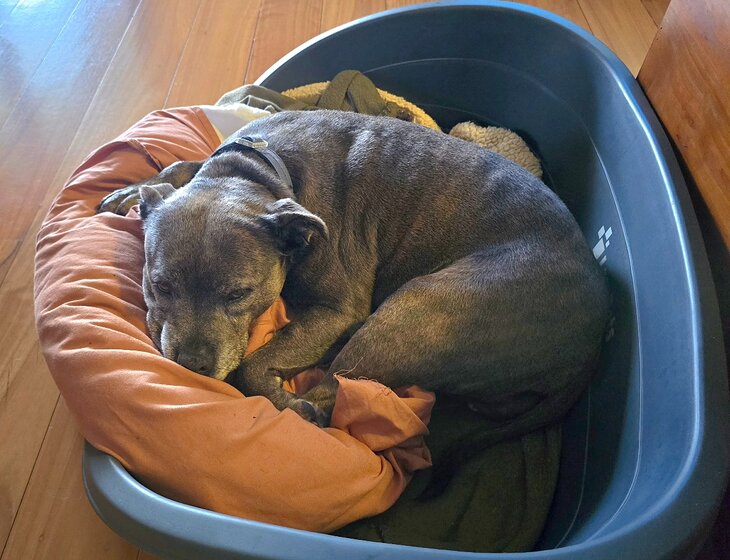1 staffy dog(very quiet)