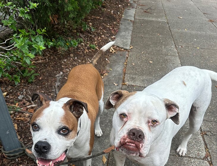 We have two friendly boxer x dogs, fish and some house plants that would need minding. Our dogs are great cuddle buddies. They’re not particularly sociable with other dogs, but that’s because they love their own pack. We have two small daughters and the dogs adore them.