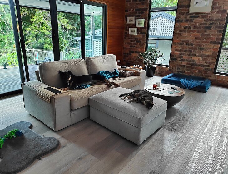 We have 2 dogs, 2 cats, 8 chickens and rooster who will need to be looked after as well.