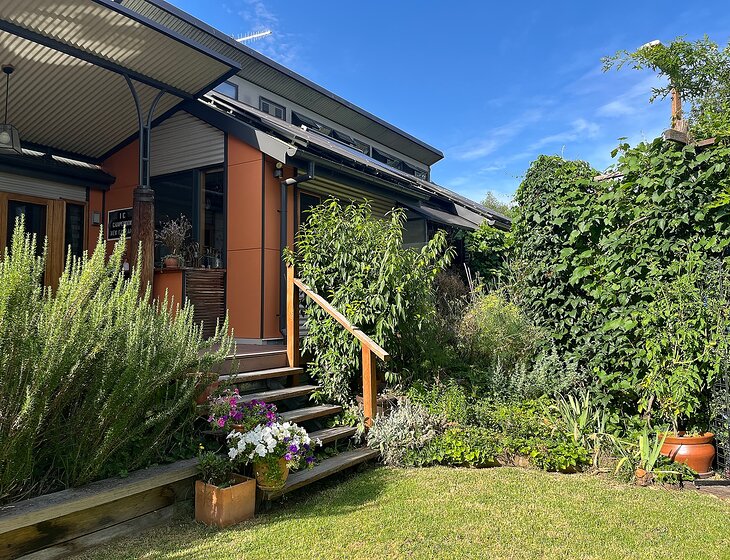 Our award-winning eco house is in Armidale, northern NSW. We have a very friendly cat, once he gets to know you, and 6 chatty chickens.