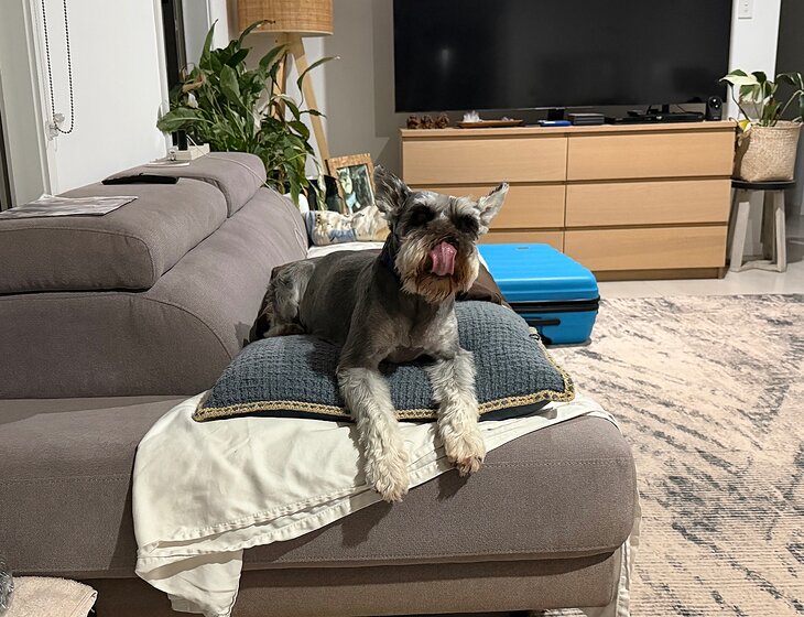We have 2 beautiful mini schnauzers who are 7 & 9 old and we live in a house with a garden with fruit trees and flowers.
