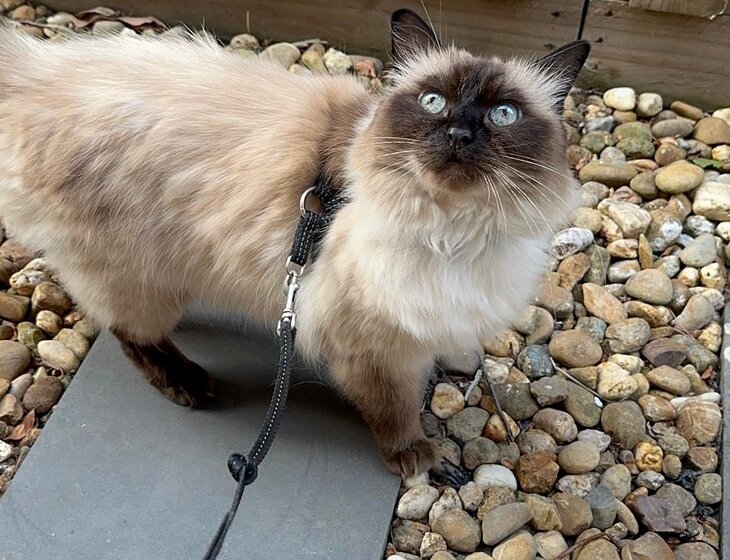 Our precious boy is an active 13 year old male seal point ragdoll who loves to be brushed and walked on his lead in the garden area.