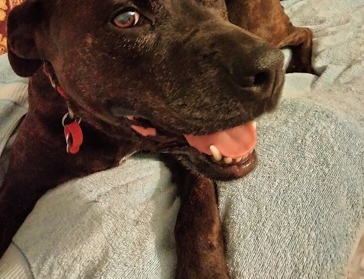 Mia is a 28kg rescue dog. Staffy/rottie/mixed X. She is very sweet and loves pats and attention. She is generally dog social as long as other dogs respect her personal space. Due to being attacked 6yrs ago, she can be timid and uncertain of over excited dogs including puppies and small yappy dogs. While she is very keen to meet other dogs it is best to avoid unknown dogs due to unpredictability. However, she does have several doggie friends in the neighbourhood of similar size whose owners (and the dogs themselves) would probably make themselves known. In summer Mia has a 20min walk as long as weather is not too hot. She has a front attaching harness and walks reasonably well on lead.