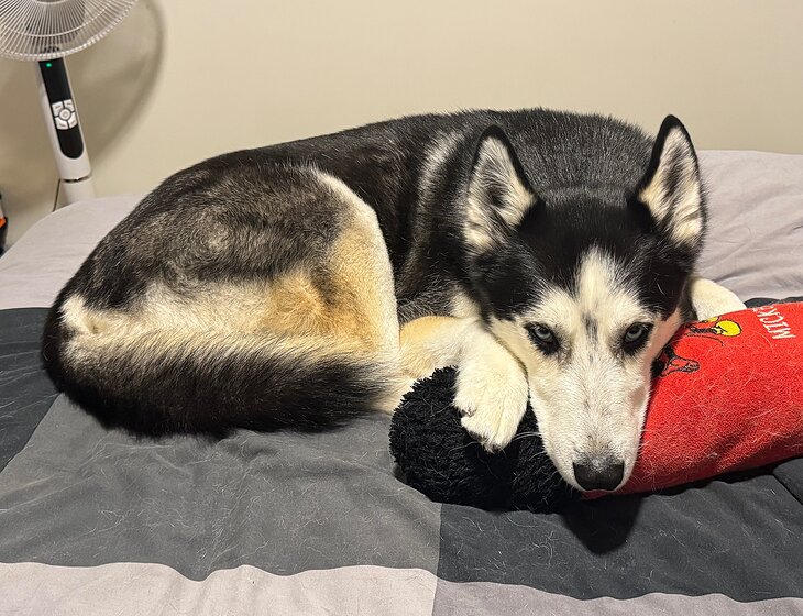 Malik is very well behaved and lives indoors with his own doggy door allowing him to access the house and backyard when he needs to. He typically enjoys just lazing around, but would enjoy some physical activity during the cooler times of the day.