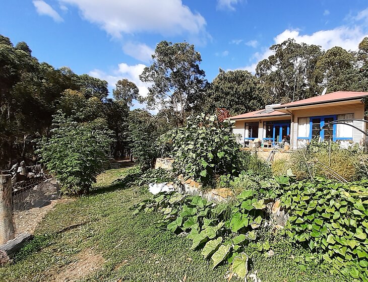 Our farm, with a 3 bedroom solar passive house is 10km from Balingup town, surrounded by beautiful Jarrah forest. We have 2 horses, chickens and Pigeons and a big vegie garden, that provides food for people that are interested in gardening.