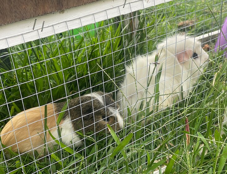Millie is a shy and timid cat, easily scared and distressed by change but warms up after a few days- on her own terms. Monty the rescued alexandrian parrot has a lot to say, usually more vocal in the afternoons, very entertaining and charismatic does not fly likes to sit on shoulders and take a walk around the house he does not like to be away from his cage for long and will let you know when he is ready to return home. Finally our amazing little composters Pudding and Charlie two Guinea pigs, Pudding is the more vocal one and advocates for Charlie, calling out for veggie scraps whenever people are nearby.