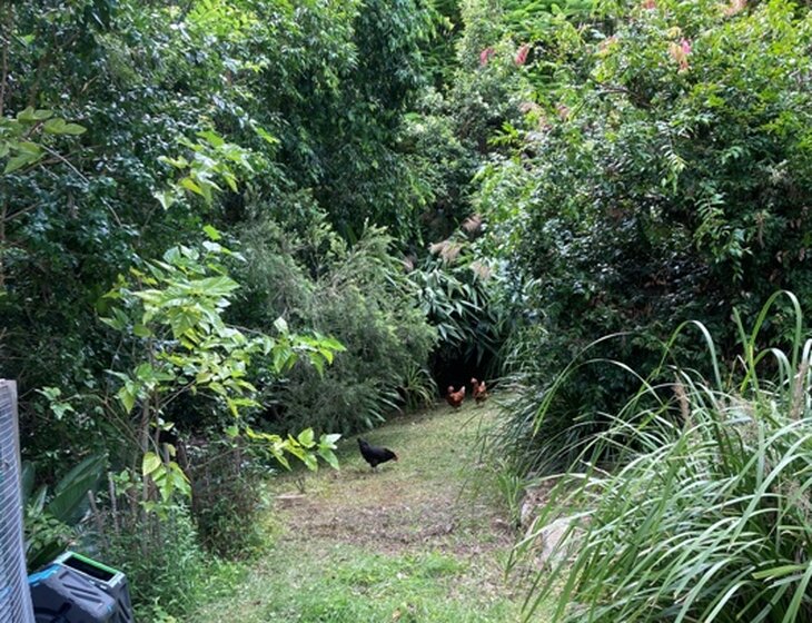 - Chicken: collect eggs and top up water & Grain, open/close door morning/night when home.