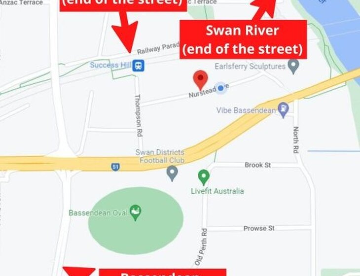 Our home has the Swan River at one end and a Train station at the other. A shopping and cafes are also within walking distance.