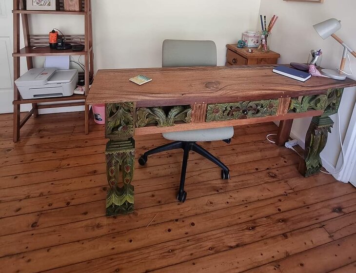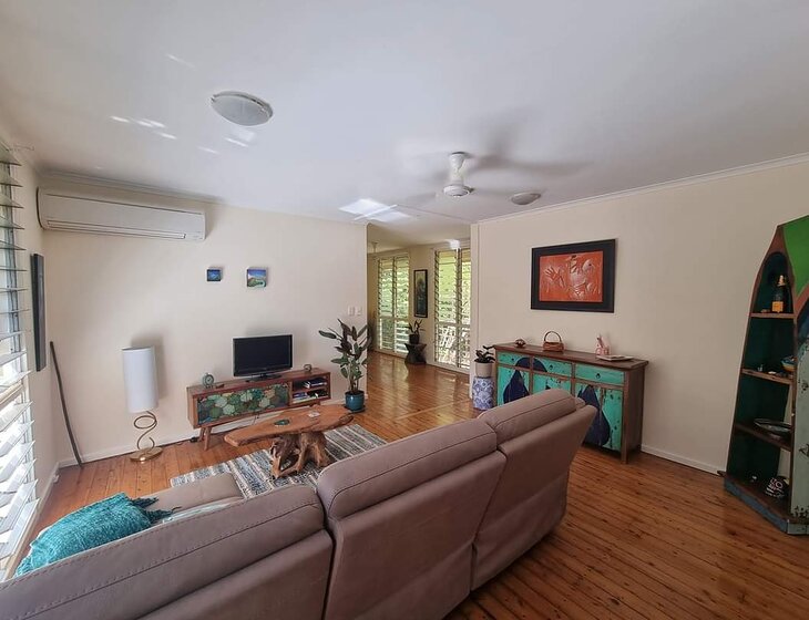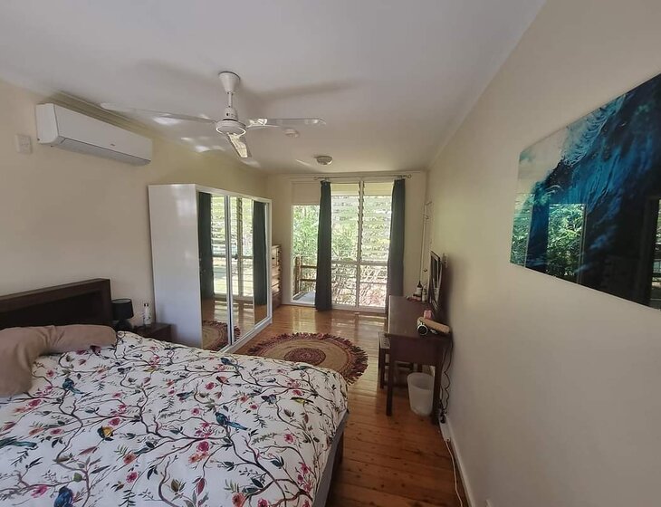 Elevated home in Batchelor on the edge of Litchfield National Park (full of waterfalls to swim in and walk around). The home office has a lovely view, with birds often feeding in the trees that line the window. Fully air-conditioned. There are outdoor seating areas under the house, on the deck, or you can chill out in the hammock and spa. The house has large tropical gardens and gated driveway. There is one bedroom with the spare room set up as a gym. The neighbourhood is very quiet and safe with a friendly local vibe and markets once a month.