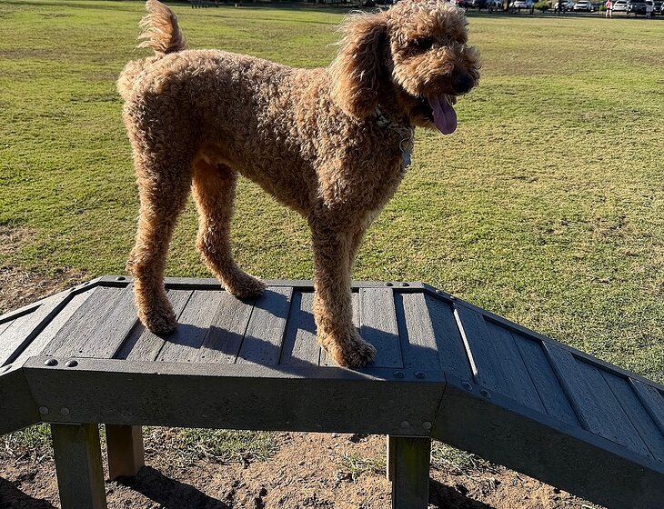 Standalone home and a groodle. He needs at least an hours exercise a day, give him that and he's a lazy log the rest of the day. Dog park nearby if you prefer. Full house amenities including a pool. This is a dog sit, comes with a house.